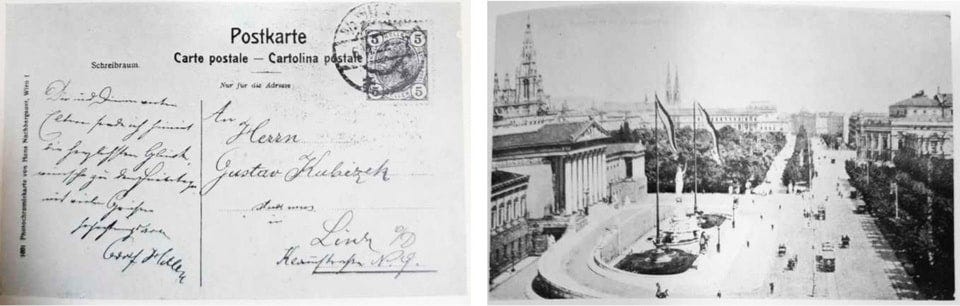 Klara financed a fortnight’s stay in the capital despite the family’s limited means. Adolf discovers the imperial metropolis at the beginning of May 1906. Dazzled. He walks the Ringstrasse for hours, admires the sumptuous façades of public buildings, visits museums, attends Tristan und Isolde at the Opera. On 8 May, he writes to August Kubizek, his best friend who remained in Linz. Describes the monumental architecture, the magnificence of the Opera’s interior hall.