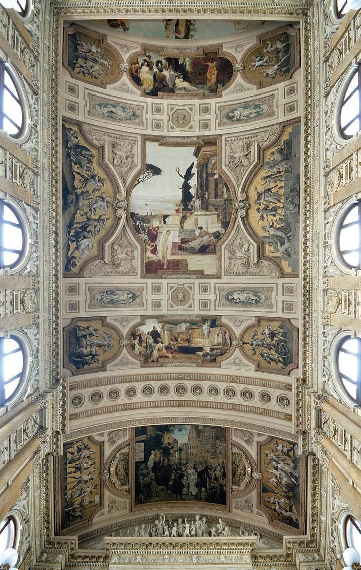 Klimt founded the Vienna Secession in 1897, a movement that rejected conservative academic art for decorative symbolism and Art Nouveau sensuality. His early work was conventional and academic, earning official commissions.