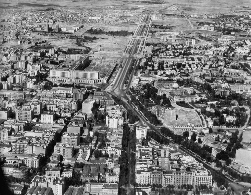 Madrid, late July 1940. The Francoist capital bears the stigmata of the civil war ended a year earlier. Facades riddled with bullet holes, gutted buildings, leaden atmosphere. Leonora does not speak Spanish, which reinforces her disorientation. Her body betrays her: she staggers while walking, loses balance, clings to walls like a wounded crab. Her legs refuse to walk straight.
