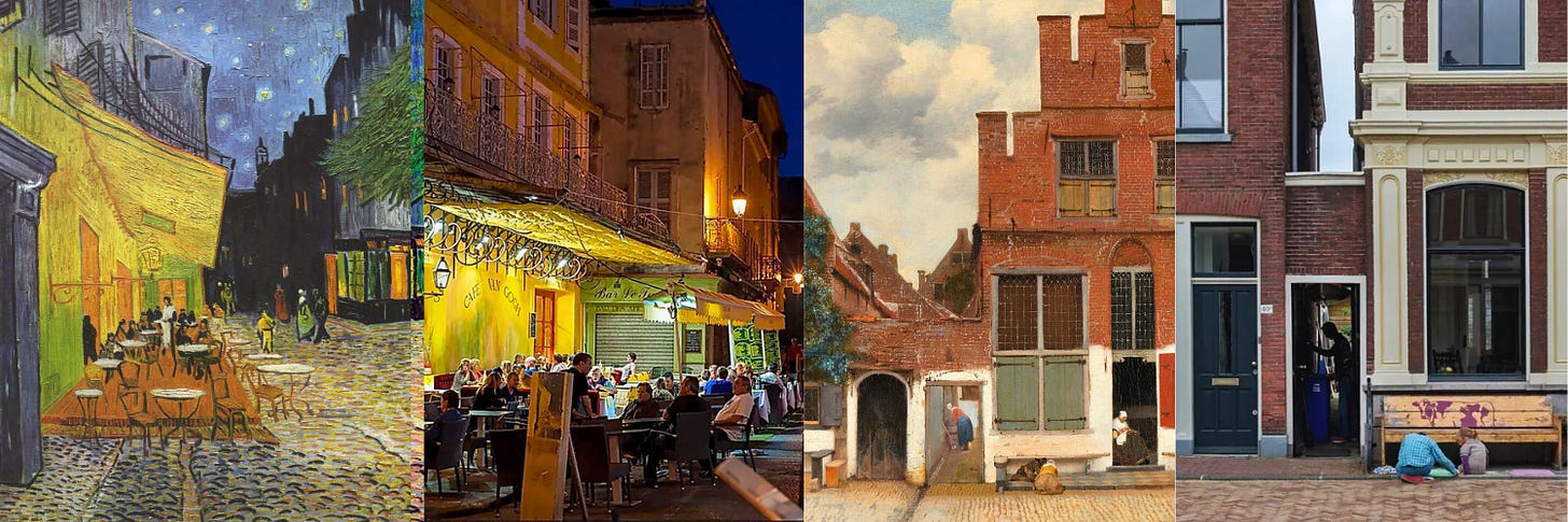 From the "American Gothic" house in Iowa to Van Gogh’s yellow café in Arles. Discover the actual spots where history’s most famous masterpieces were painted.