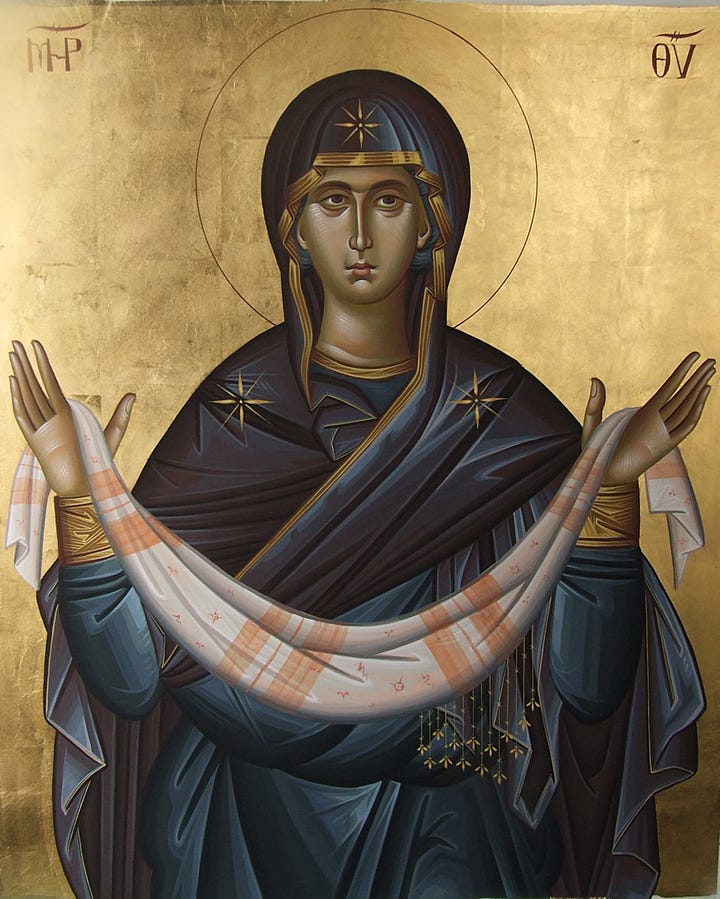 Byzantine art and the Middle Ages depicted her as a hieratic icon, a distant and majestic celestial queen seated on a throne.