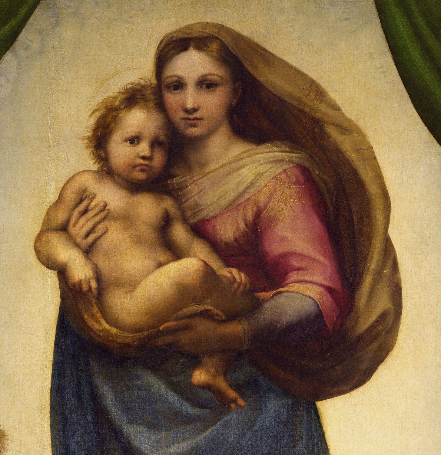 The Renaissance made a radical turn by “humanizing” the Virgin: she becomes an earthly mother, beautiful and tender, placed in natural landscapes (Raphael, Leonardo da Vinci).