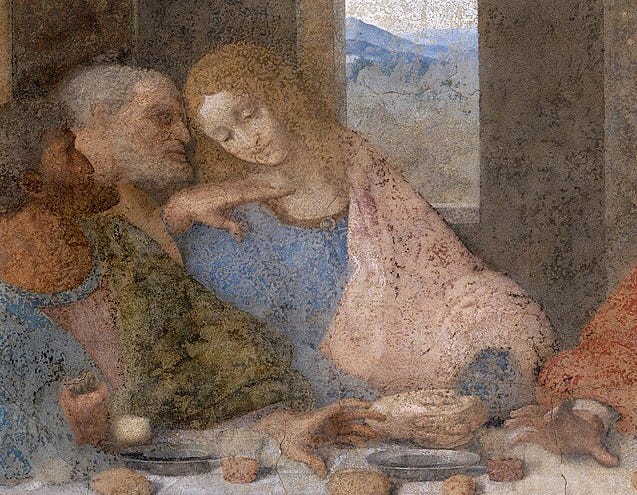 In the entire Italian pictorial tradition of the 15th century, John is depicted this way. The youngest of the apostles, almost adolescent, beardless, soft featured, sometimes asleep on Christ’s shoulder as the biblical text mentions. Leonardo follows the convention. He’s not hiding anyone.