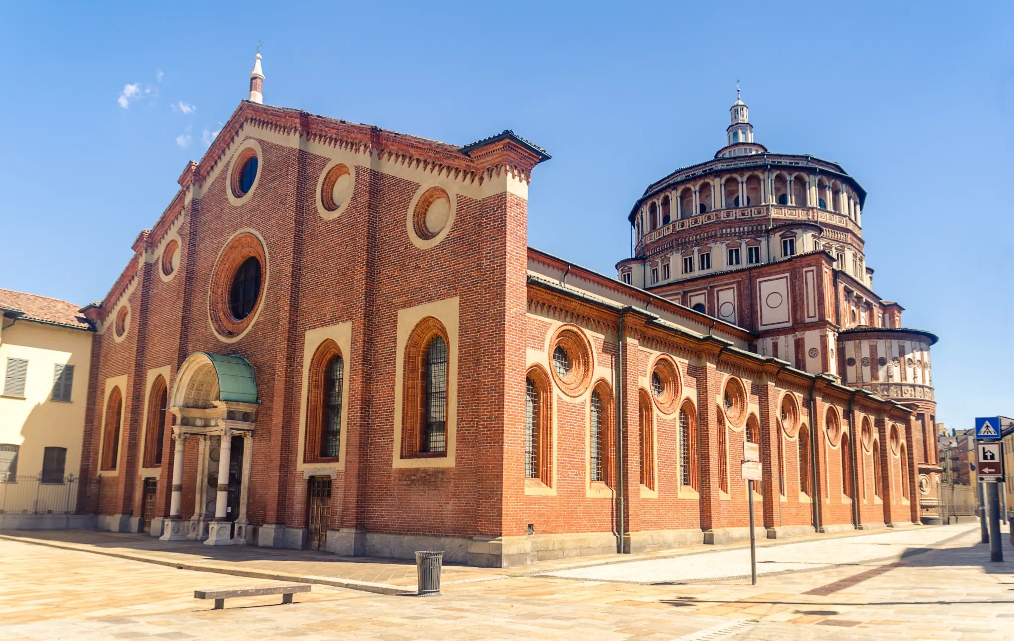 The work is there, on the far wall. It has never left this room since 1498. It never will. Leonardo painted it directly onto the wall, using a dry technique, instead of traditional fresco.