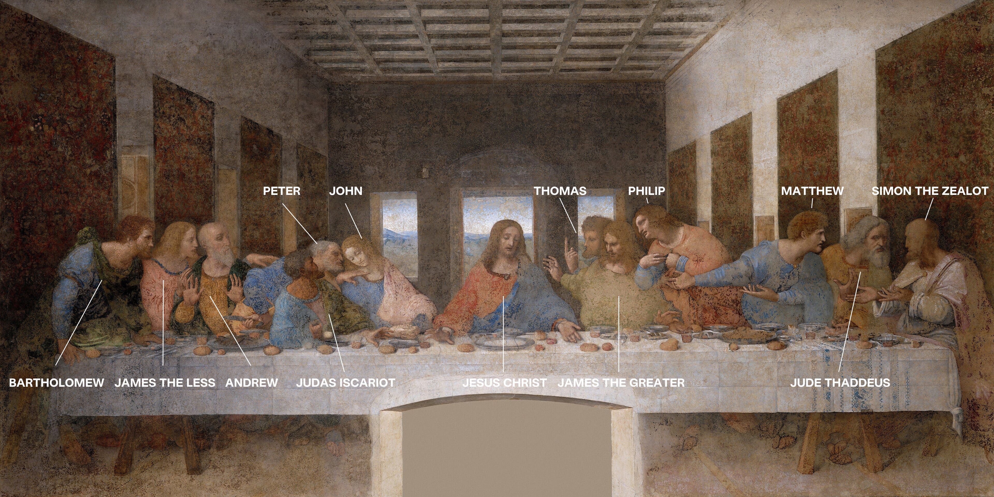 Every apostle around Christ is identified by Leonardo himself, in a handwritten note he left behind that gives their exact order around the table.