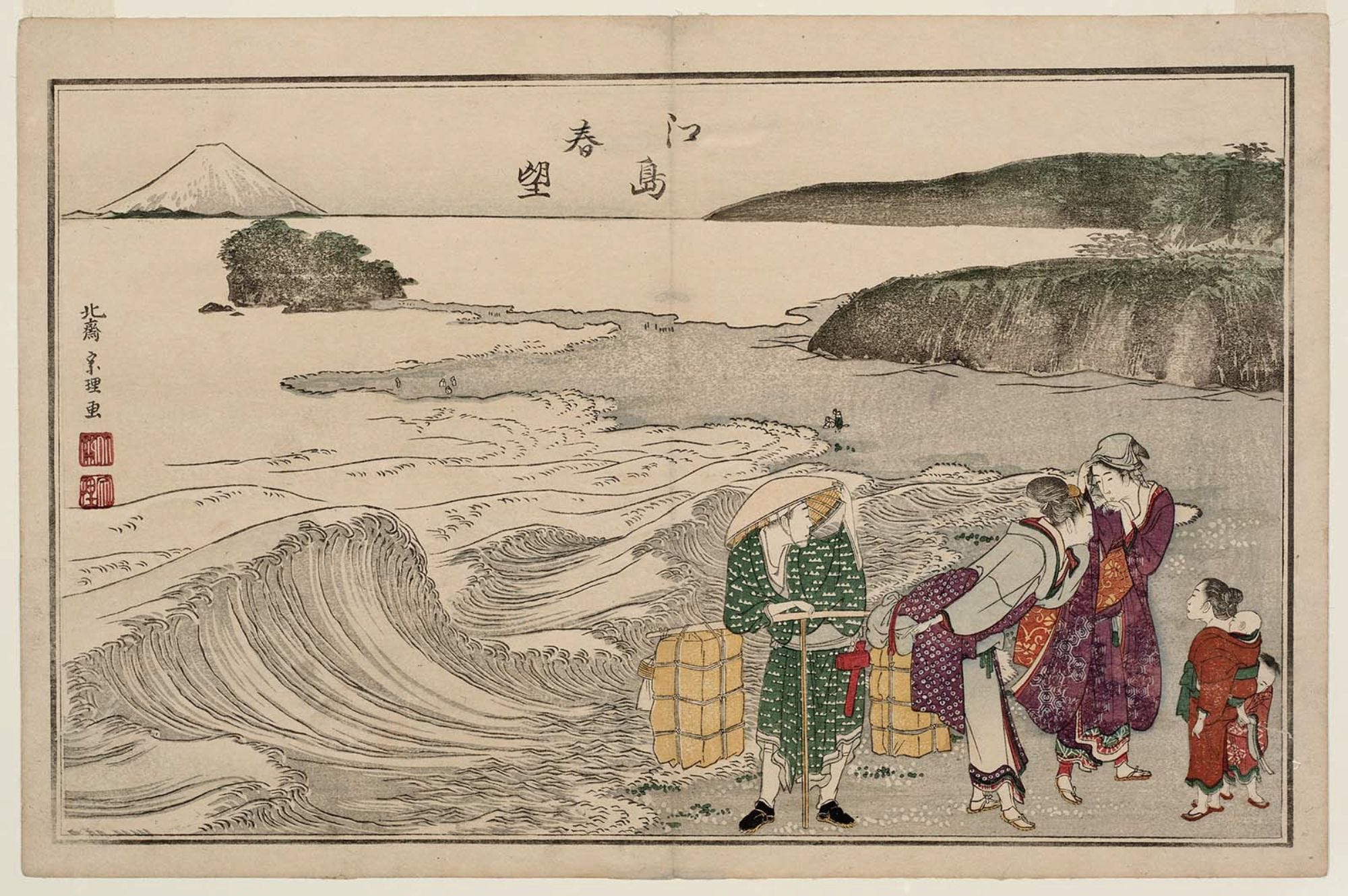 He takes out a fresh sheet, begins again. Strollers gaze at the sea from the beach of Enoshima, Mount Fuji appears tiny on the horizon. The wave spreads across the shore, trapped on the left side. But the sea sleeps.