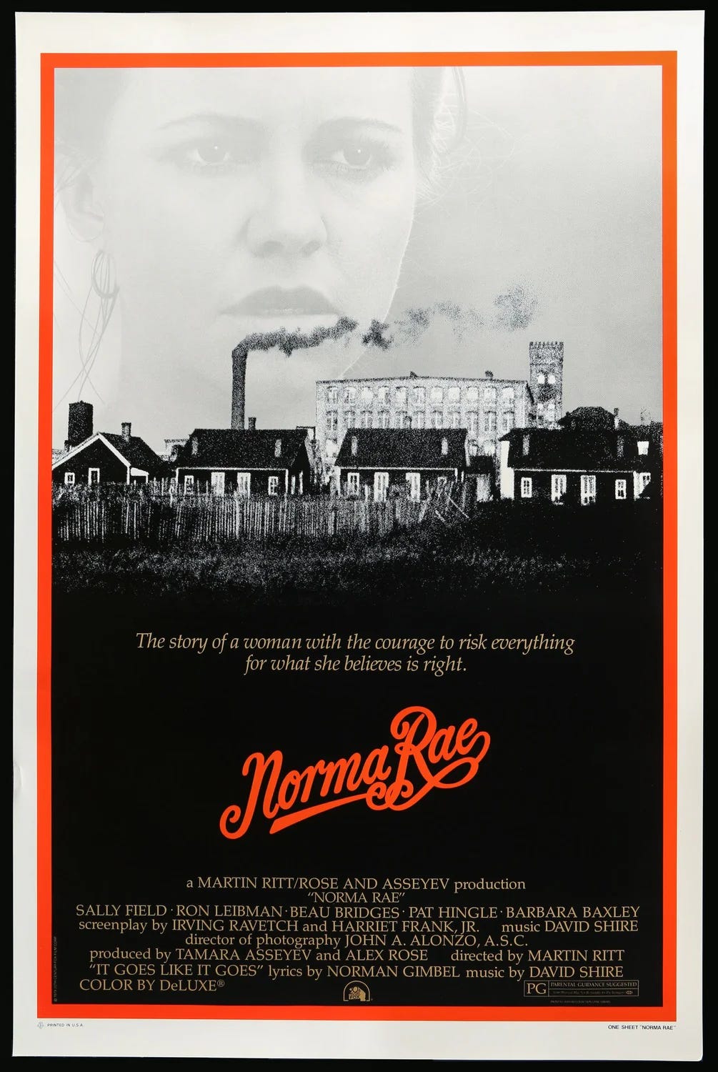 “Norma Rae” (1979): Southern textile worker organizing a union, authentic Sally Field, class struggle without romance.