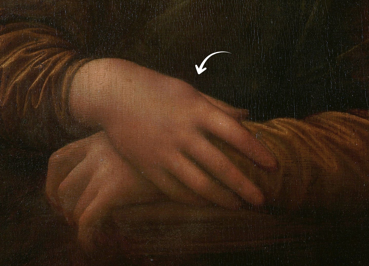 Look at the corner of her left eye. A small yellowish spot, barely visible, marks the inner upper eyelid. In 2004, researchers identify this detail as a xanthelasma, a deposit of cholesterol beneath the skin. This lesion would not be described medically until 1851. If the identification is correct, Mona Lisa represents the first known pictorial depiction of this phenomenon.